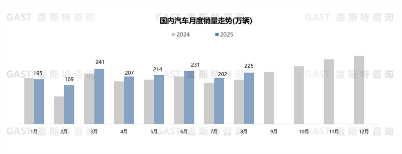 8月,國(guó)內(nèi)汽車市場(chǎng)銷售225萬(wàn)輛,環(huán)比增長(zhǎng)11.3%,同比增長(zhǎng)15.6%。其中,國(guó)內(nèi)乘用車市場(chǎng)呈現(xiàn)穩(wěn)中有升的態(tài)勢(shì),這主要得益于車企密集推出新車型,同時(shí)地方促消費(fèi)政策持續(xù)發(fā)力,有效提振了市場(chǎng)需求;國(guó)內(nèi)商用車市場(chǎng)復(fù)蘇明顯,NEV商用車的滲透推廣,以及天然氣需求的釋放,成為其增長(zhǎng)的關(guān)鍵因素。