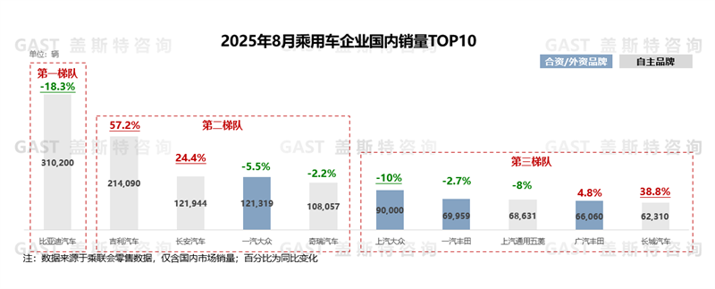 乘用車企業(yè)國(guó)內(nèi)銷量TOP10:自主品牌占據(jù)6席