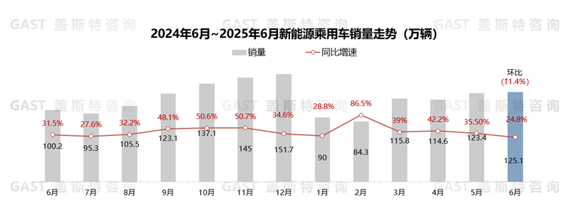 2025年上半年,中國汽車市場銷售1565.3萬輛,同比增長11.4%。這一成績的取得,一方面得益于“兩新”政策加力擴(kuò)圍,有效激發(fā)了國內(nèi)市場消費(fèi)活力;另一方面,二季度NEV出口大幅增長,帶動(dòng)上半年整體出口恢復(fù)兩位數(shù)增長,為市場增長提供了有力支撐。